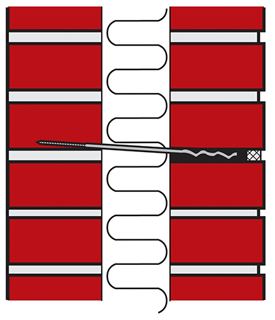 • Ved bagmursmaterialer i porebeton, træ, massive tegl og letklinker (leca).